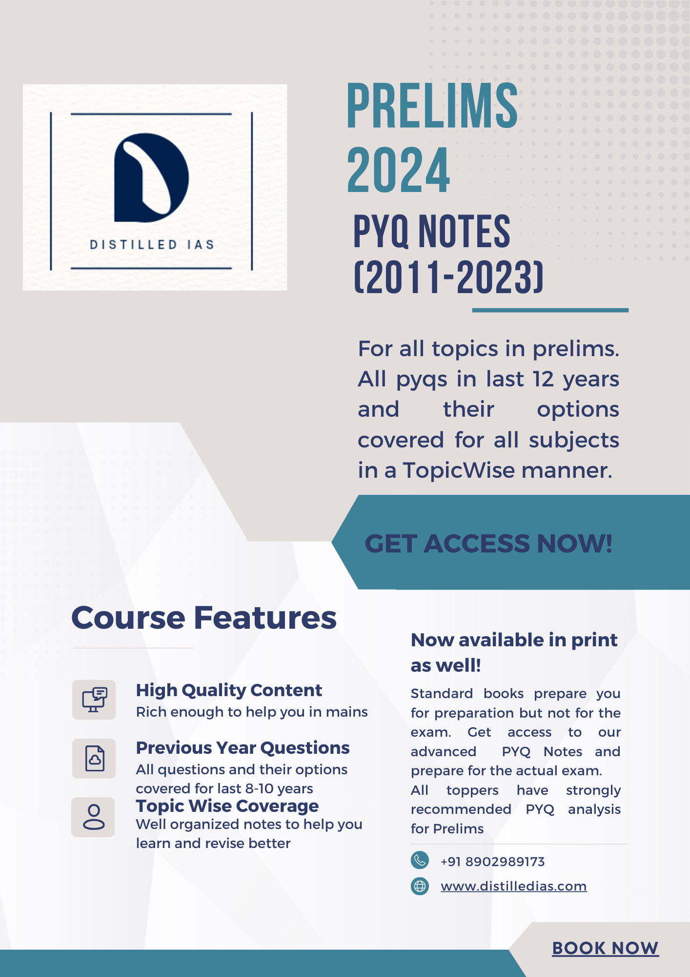 The most rigorous and effective method of ensuring success in UPSC CSE Prelims is now consolidated in 3 simple books. PYQ Notes 2024 Books - Covering all questions and their options for last 12+ years. Book our groundbreaking product now!